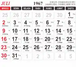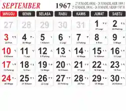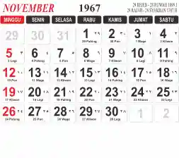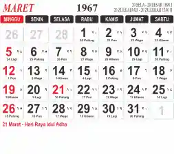 Tema kalender 1967 yang cocok buat desain kalender yang lebih lebar, cocok buat kalender kantor atau desain yang lebih minimalis.