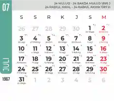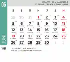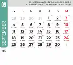 Template kalender 1967 dengan konsep minimalis modern dengan warna yang soft, cocok sekali buat kantor / bisnis seperti bank.