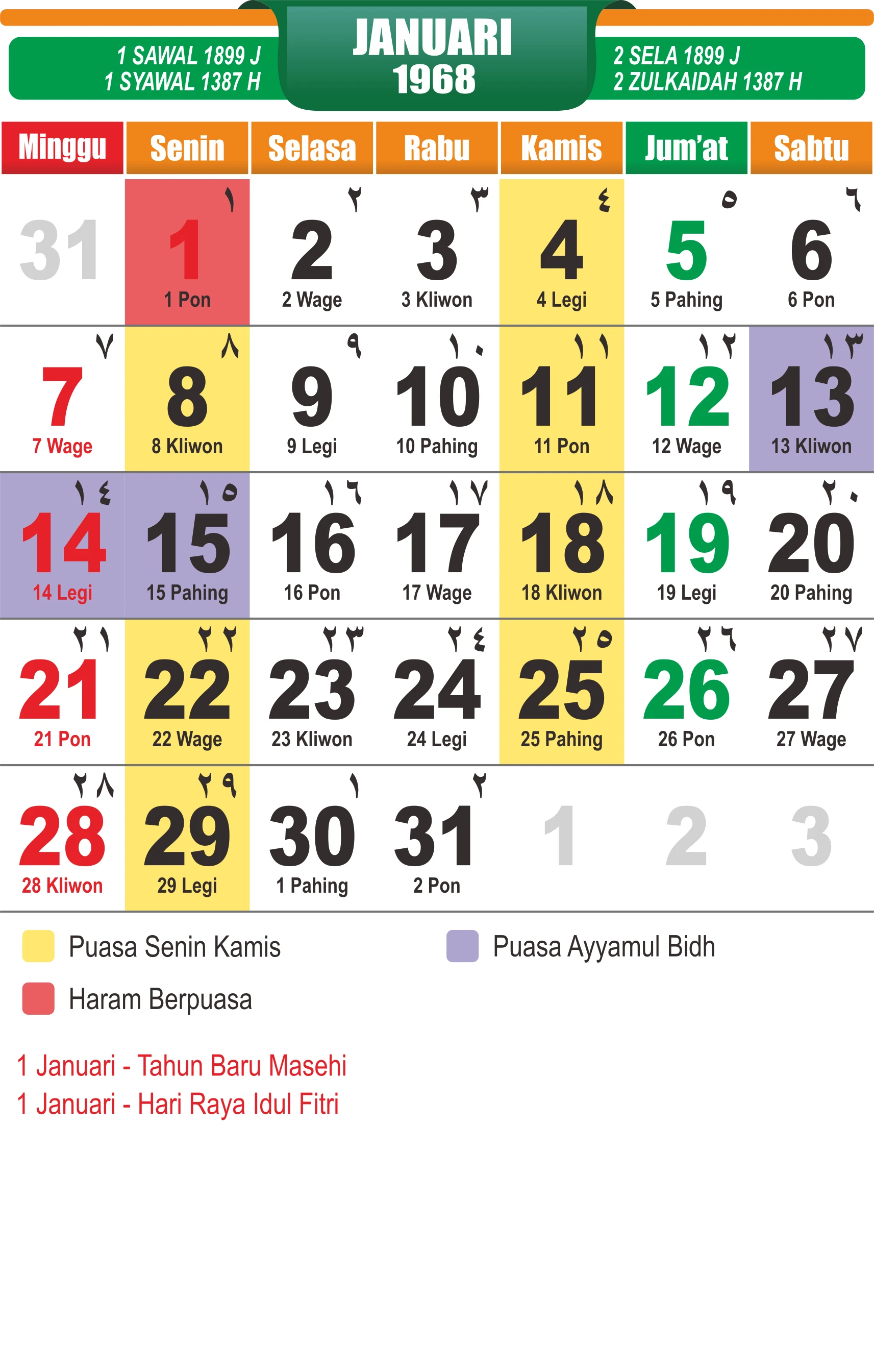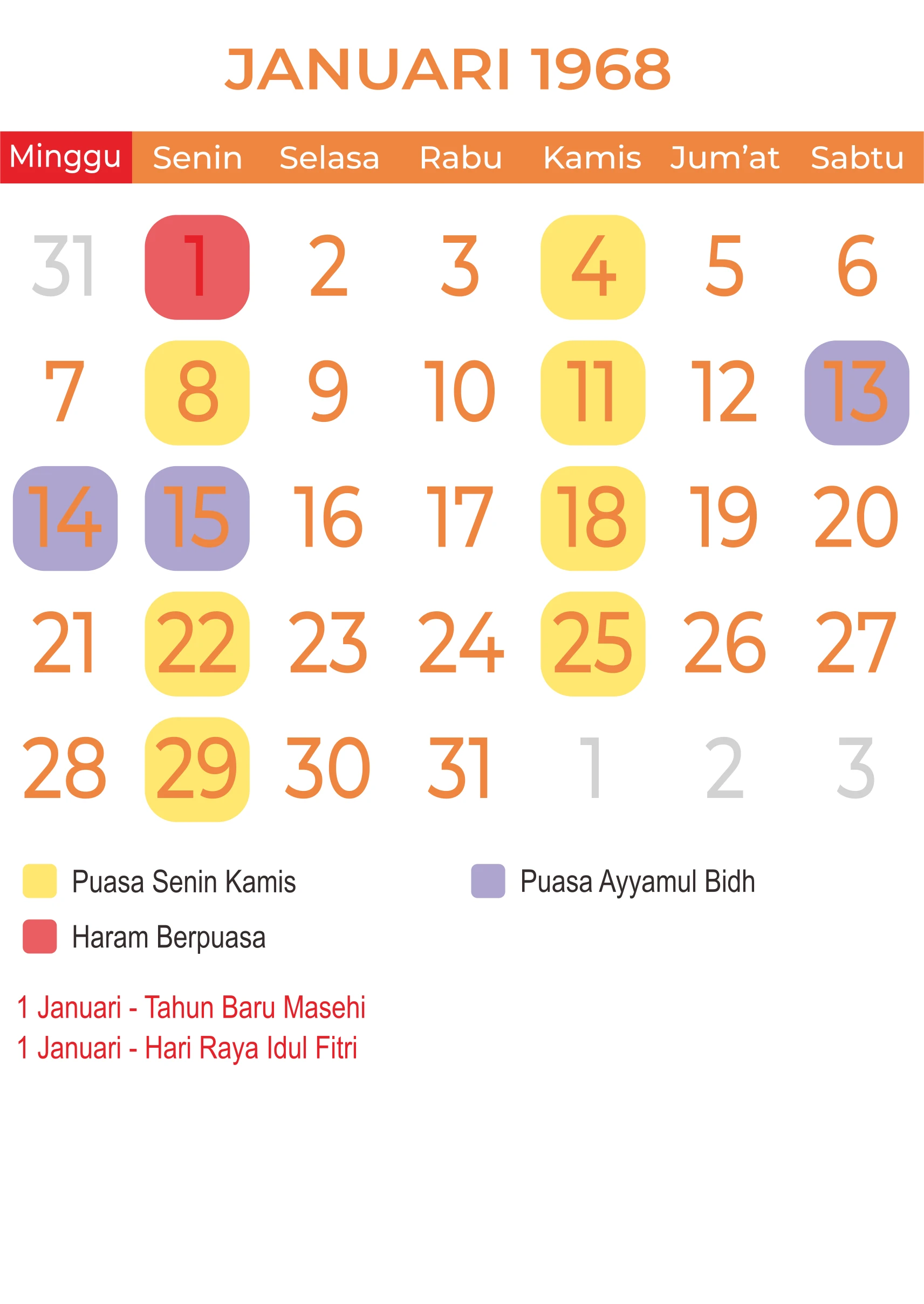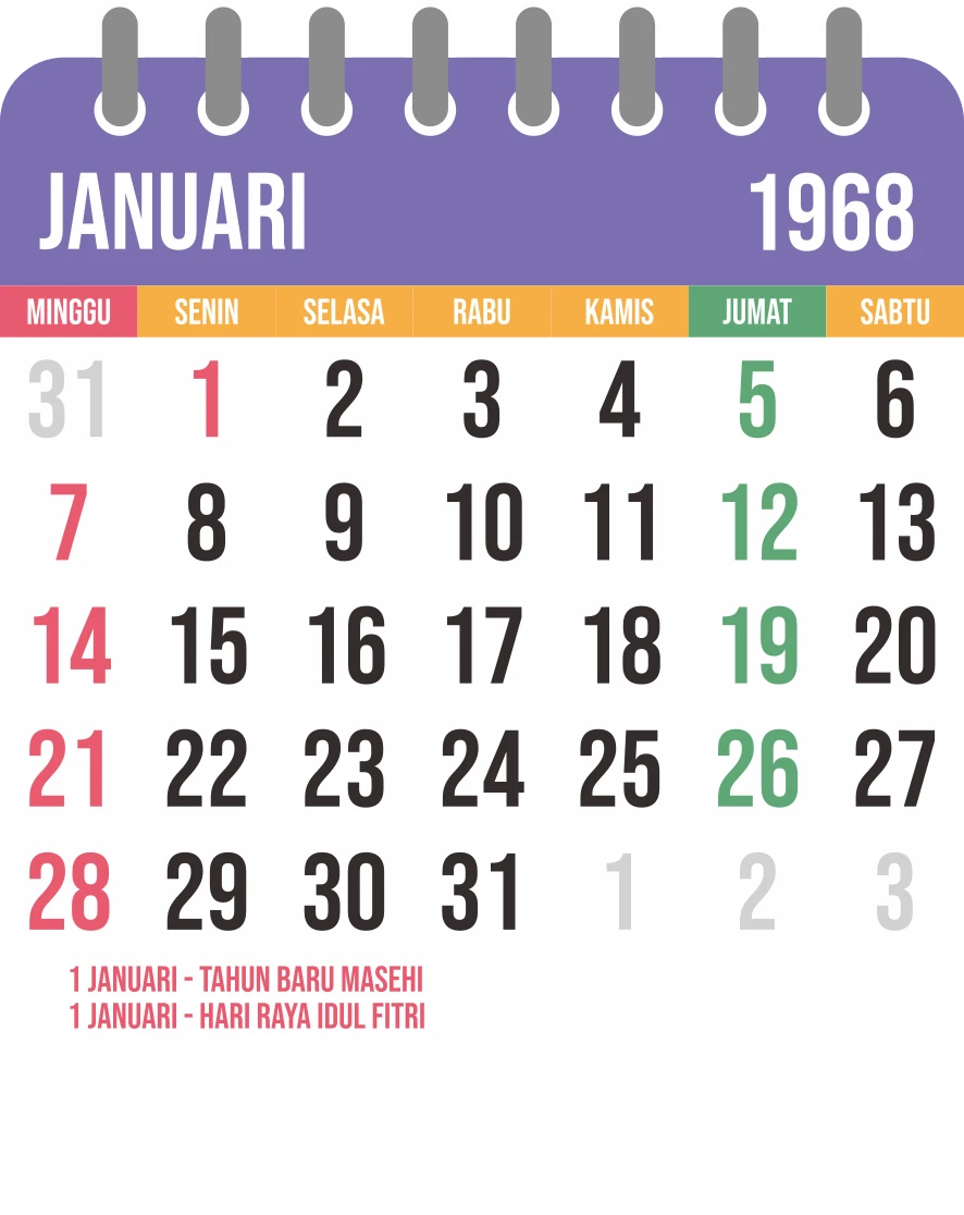 Dapatkan akses vector template kalender 1968 dengan berbagai tema, file editable, warna CMYK / RGB untuk CorelDRAW.