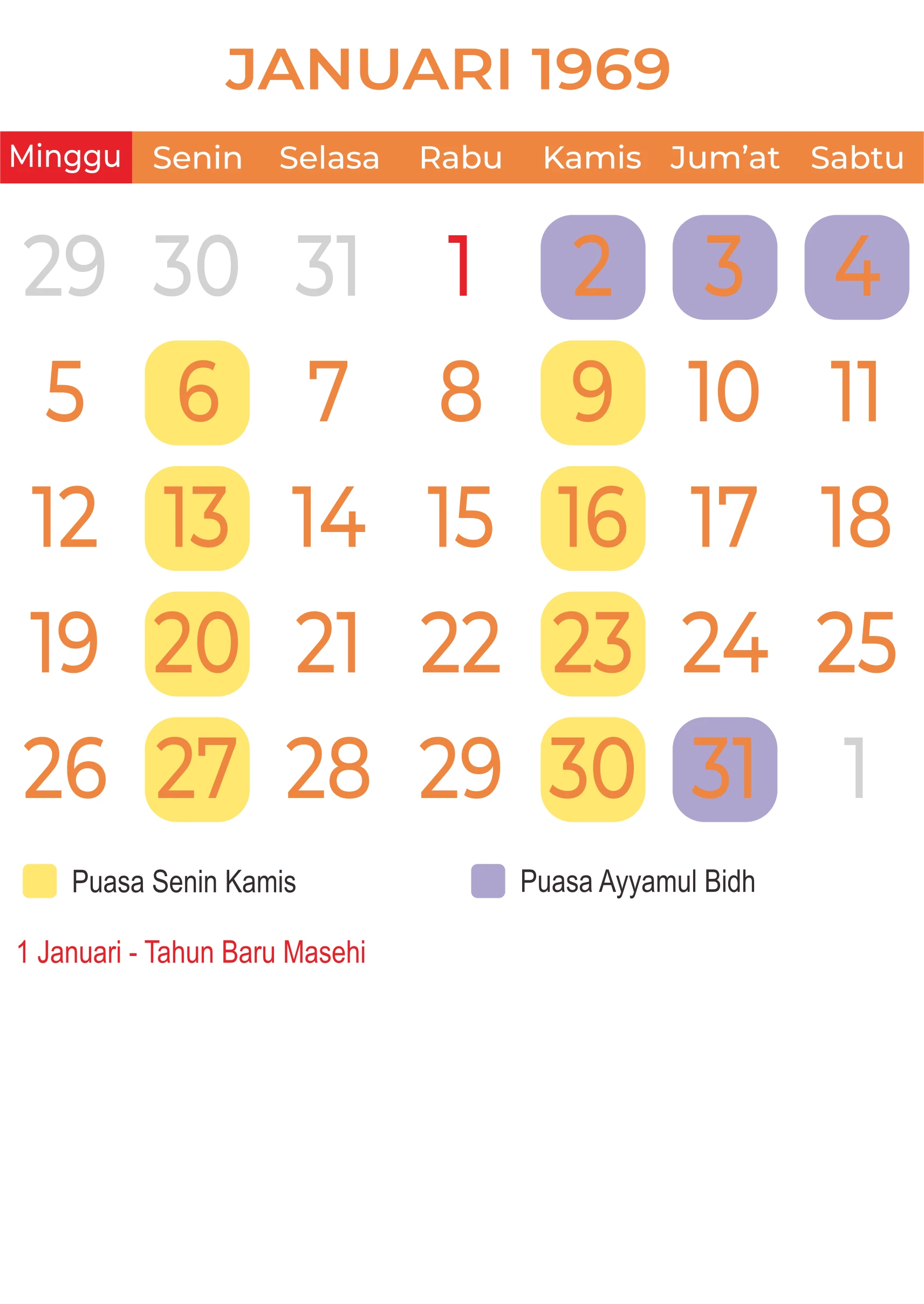 Dapatkan akses vector template kalender 1969 dengan berbagai tema, file editable, warna CMYK / RGB untuk CorelDRAW.