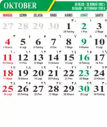 Tema kalender 1970 yang nuansa Islami yang cocok buat pondok pesantren atau lembaga keagamaan. Menggunakan font standar Times New Roman yang mudah dibaca.