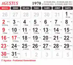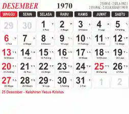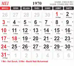 List hari libur tahun 1970 pada Tema 3 (Wide)
