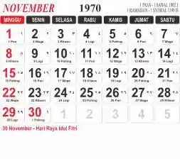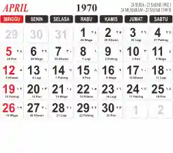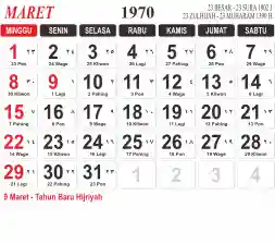 Tema kalender 1970 yang cocok buat desain kalender yang lebih lebar, cocok buat kalender kantor atau desain yang lebih minimalis.