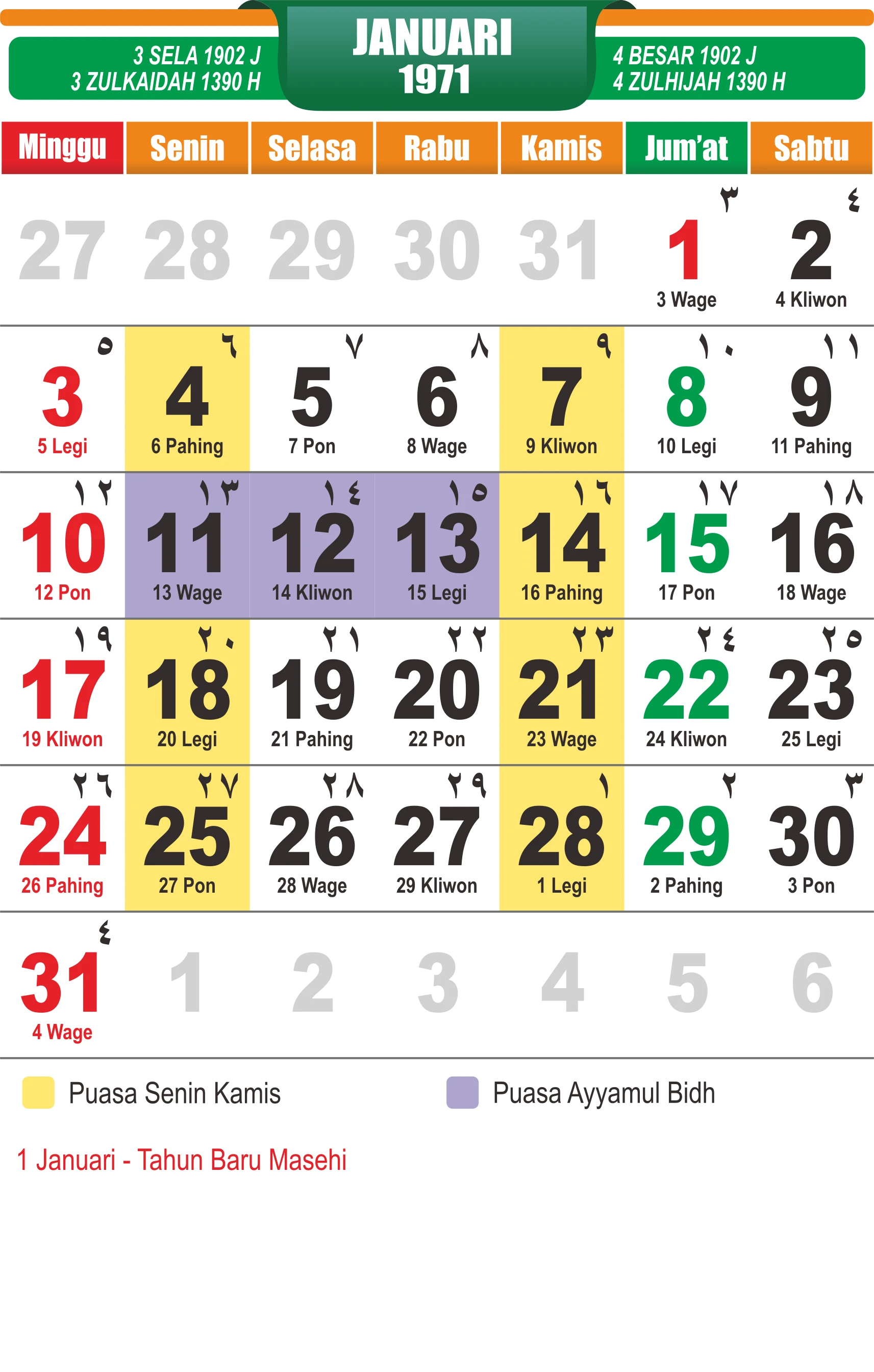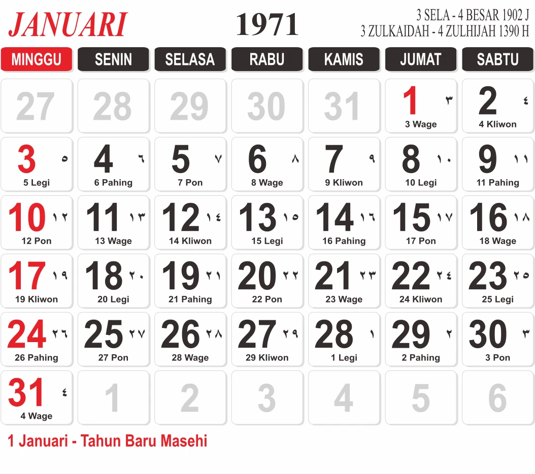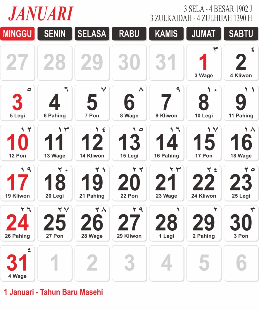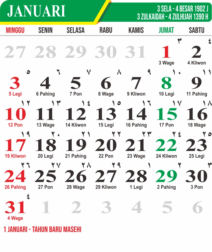 Template Kalender Jawa + Hijriah Vector