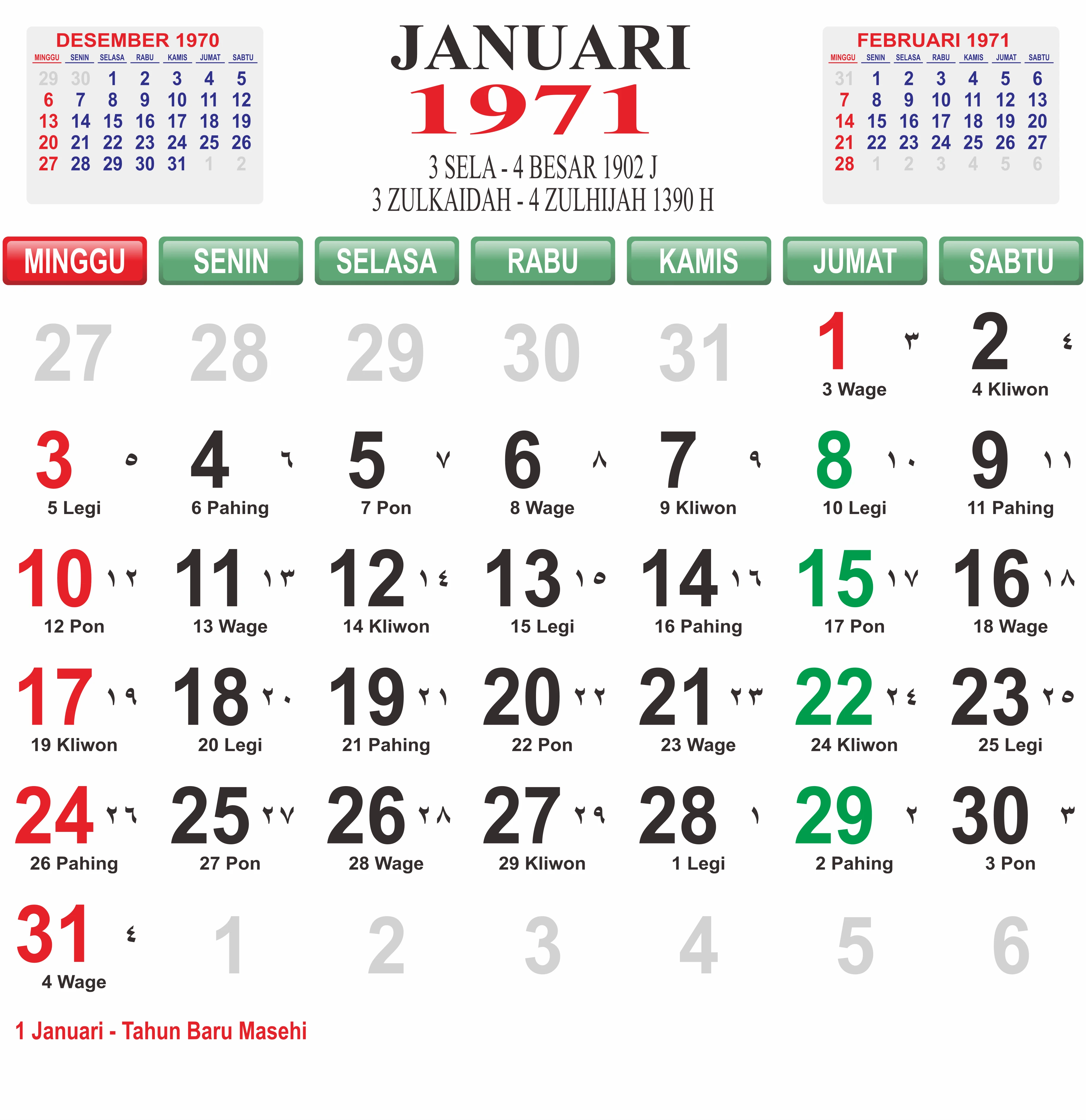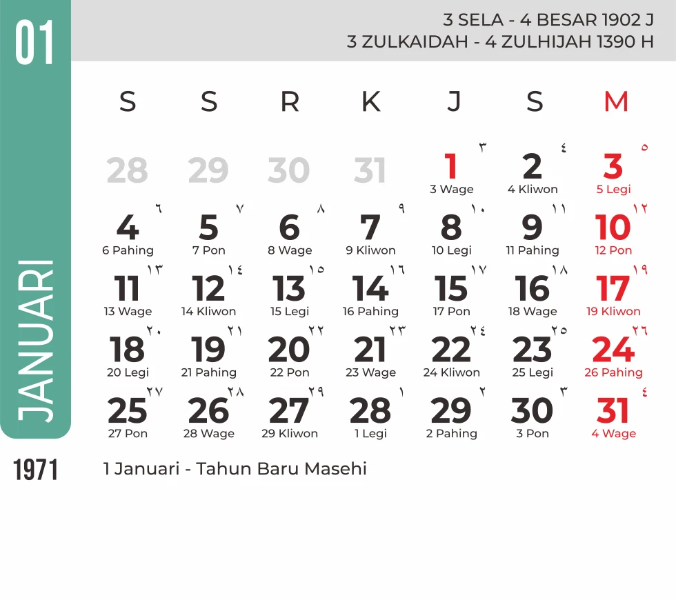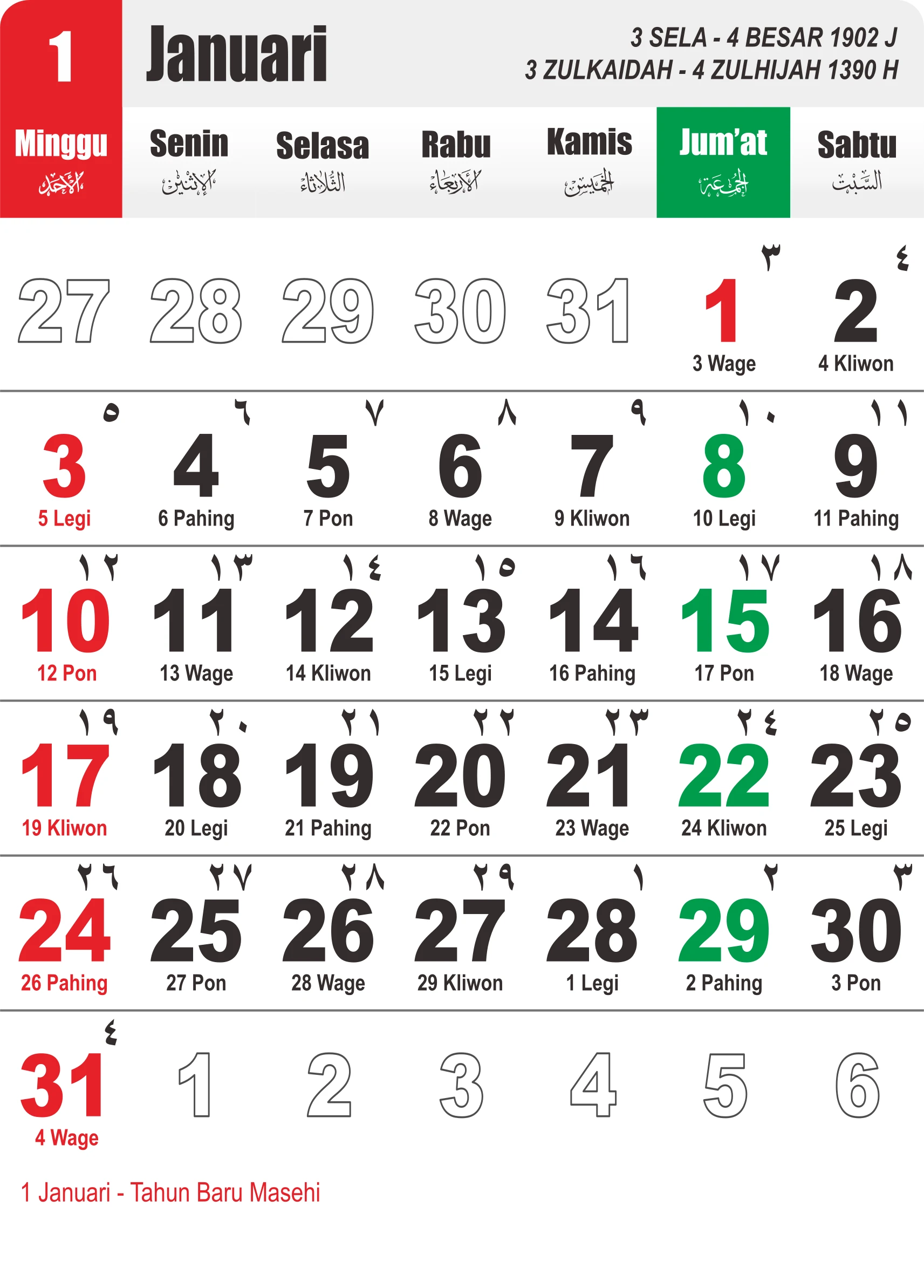 Template Kalender Jawa + Hijriah Vector