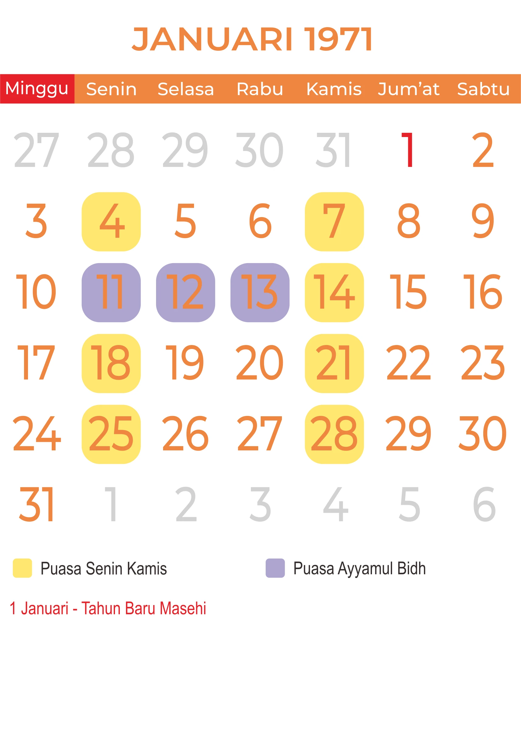 Template Kalender Puasa Vector