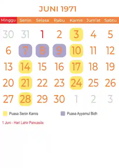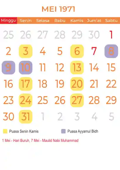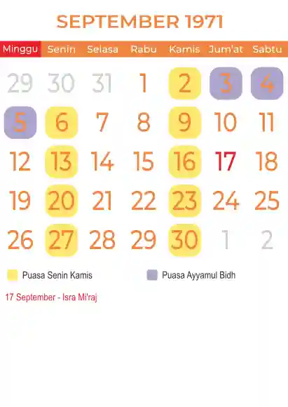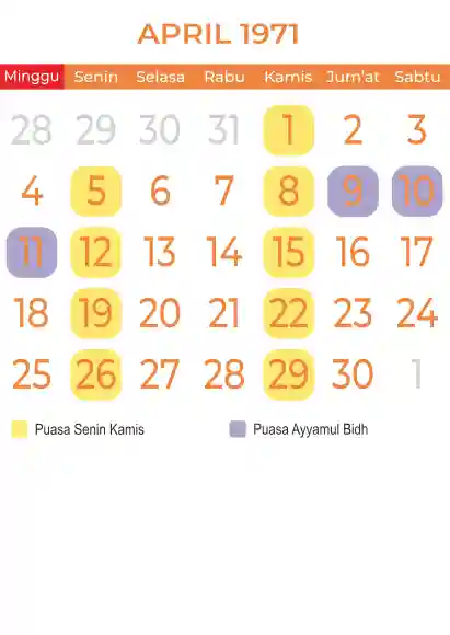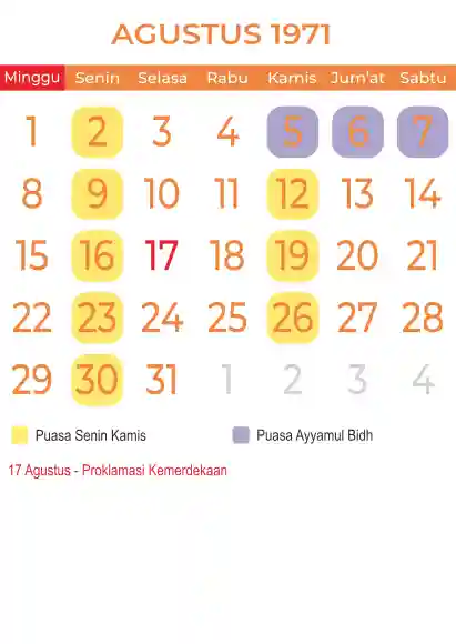 Template kalender puasa 1971, Versi yang lebih simple, cocok sekali buat anda yang ingin cetak kalender yang bermanfat buat umat.