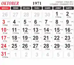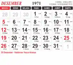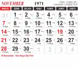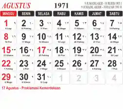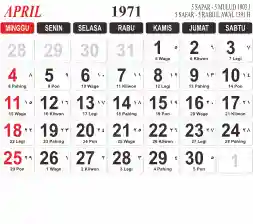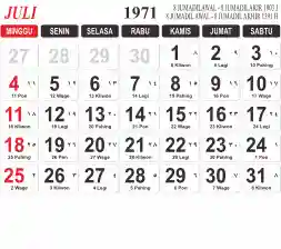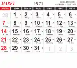 Tema kalender 1971 yang cocok buat desain kalender yang lebih lebar, cocok buat kalender kantor atau desain yang lebih minimalis.