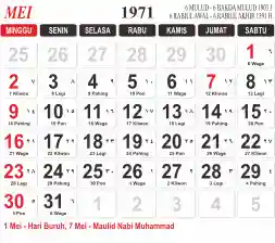 List hari libur tahun 1971 pada Tema 3 (Wide)
