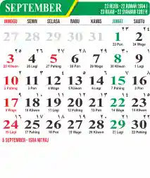 Tema kalender 1972 yang nuansa Islami yang cocok buat pondok pesantren atau lembaga keagamaan. Menggunakan font standar Times New Roman yang mudah dibaca.