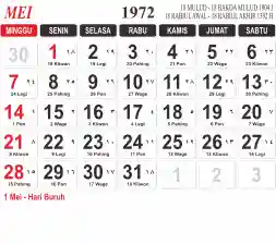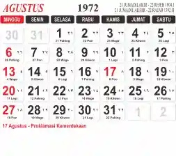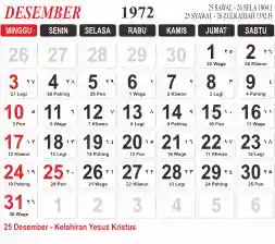 List hari libur tahun 1972 pada Tema 3 (Wide)
