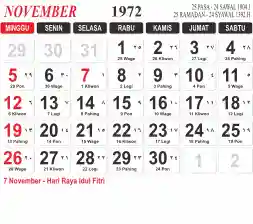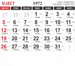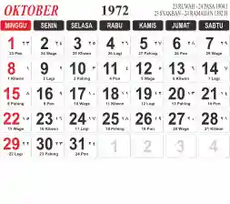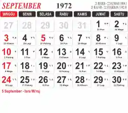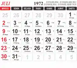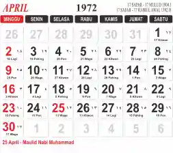 Tema kalender 1972 yang cocok buat desain kalender yang lebih lebar, cocok buat kalender kantor atau desain yang lebih minimalis.