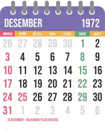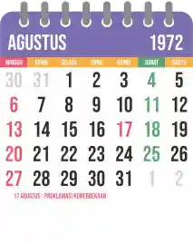 Template kalender 1972 yang bertemakan lucu dan moderen. Bentuknya simple tanpa tanggal hijriah dan tanggal jawa. Cocok buat kebutuhan kalender yang sifatnya universal.
