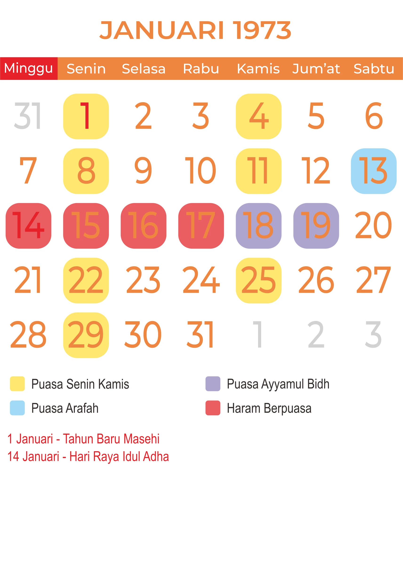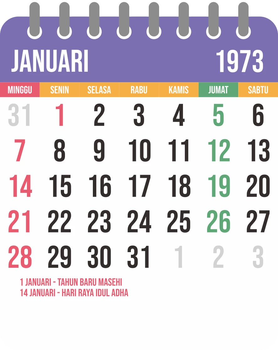 Dapatkan akses vector template kalender 1973 dengan berbagai tema, file editable, warna CMYK / RGB untuk CorelDRAW.