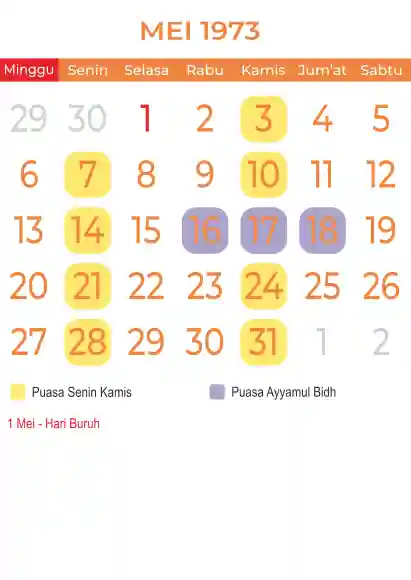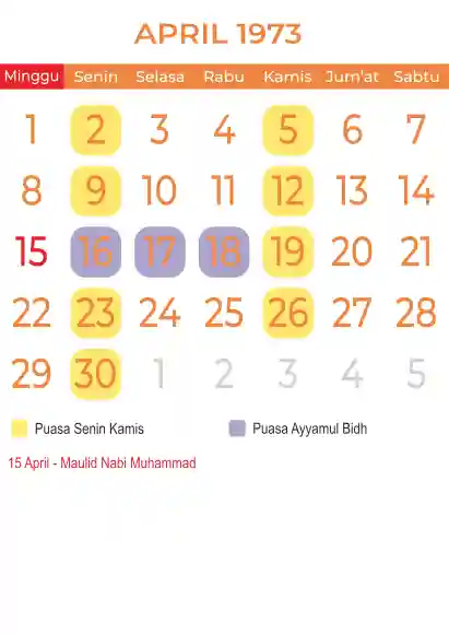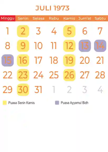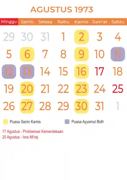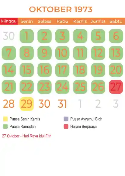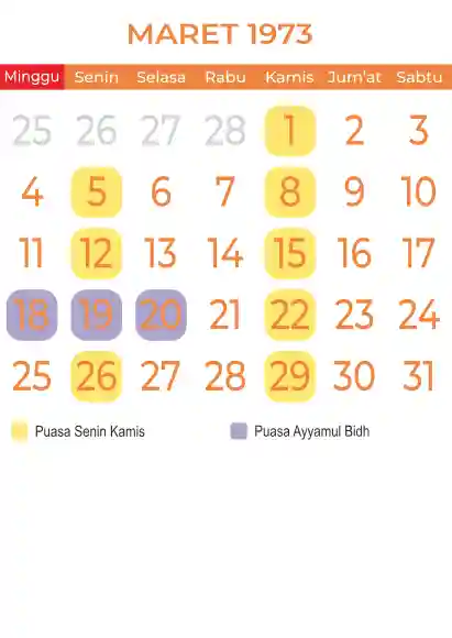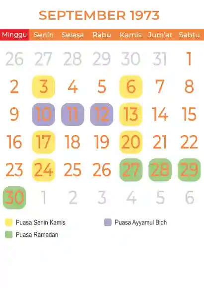 Template kalender puasa 1973, Versi yang lebih simple, cocok sekali buat anda yang ingin cetak kalender yang bermanfat buat umat.