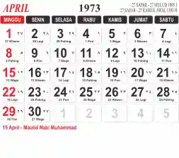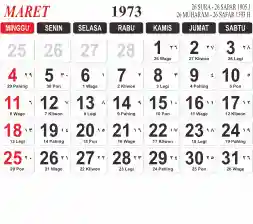 Tema kalender 1973 yang cocok buat desain kalender yang lebih lebar, cocok buat kalender kantor atau desain yang lebih minimalis.