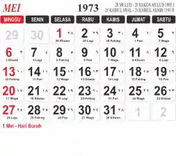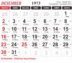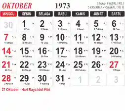 List hari libur tahun 1973 pada Tema 3 (Wide)