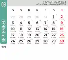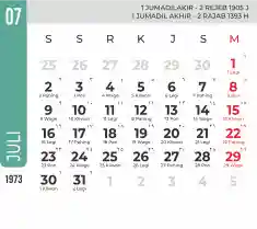 Template kalender 1973 dengan konsep minimalis modern dengan warna yang soft, cocok sekali buat kantor / bisnis seperti bank.