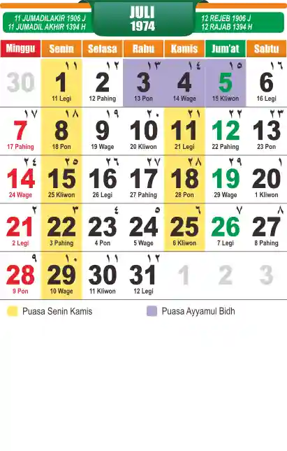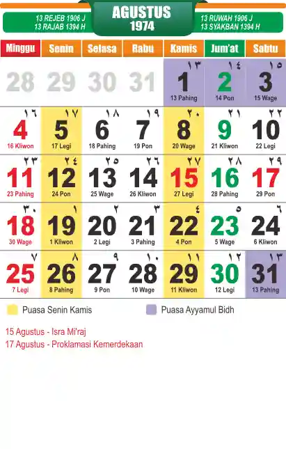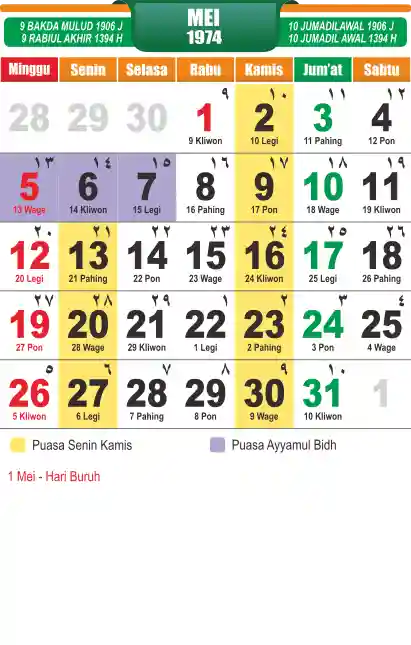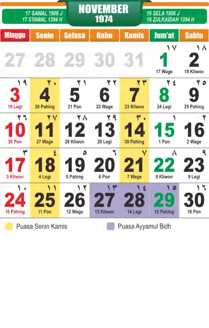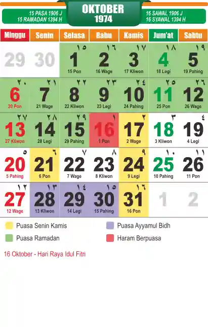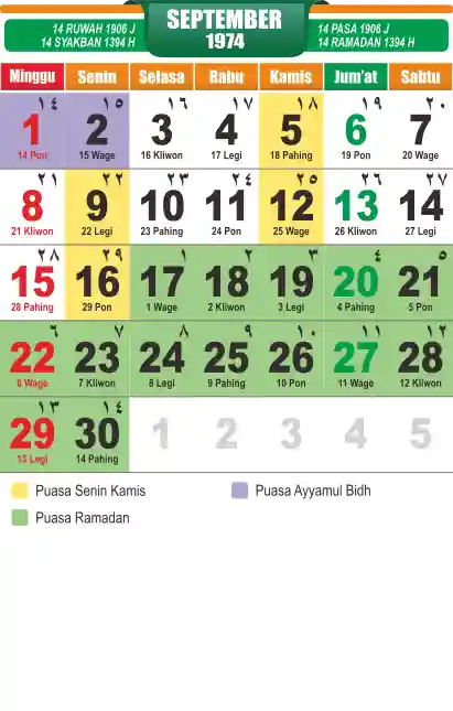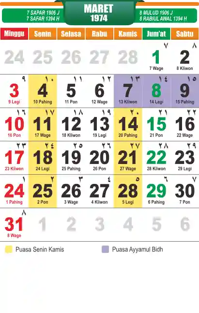 Template kalender puasa 1974, cocok sekali buat anda yang ingin cetak kalender yang bermanfat buat umat.