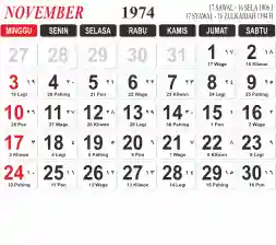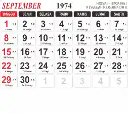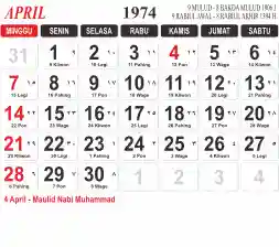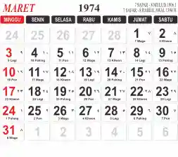 Tema kalender 1974 yang cocok buat desain kalender yang lebih lebar, cocok buat kalender kantor atau desain yang lebih minimalis.