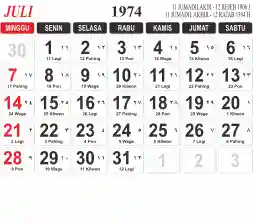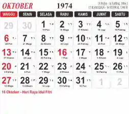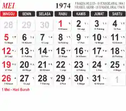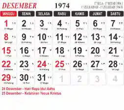 List hari libur tahun 1974 pada Tema 3 (Wide)