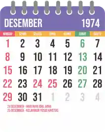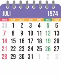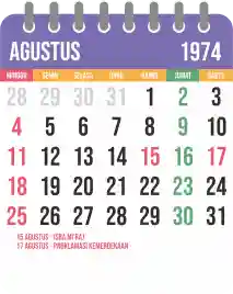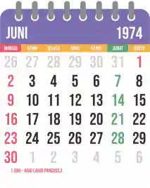 Template kalender 1974 yang bertemakan lucu dan moderen. Bentuknya simple tanpa tanggal hijriah dan tanggal jawa. Cocok buat kebutuhan kalender yang sifatnya universal.