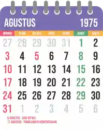Template kalender 1975 yang bertemakan lucu dan moderen. Bentuknya simple tanpa tanggal hijriah dan tanggal jawa. Cocok buat kebutuhan kalender yang sifatnya universal.