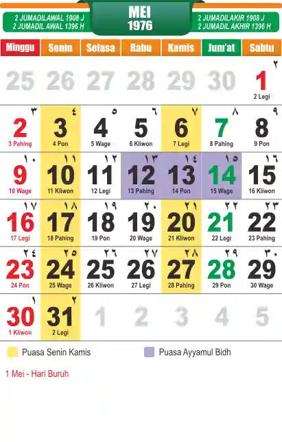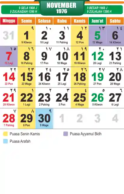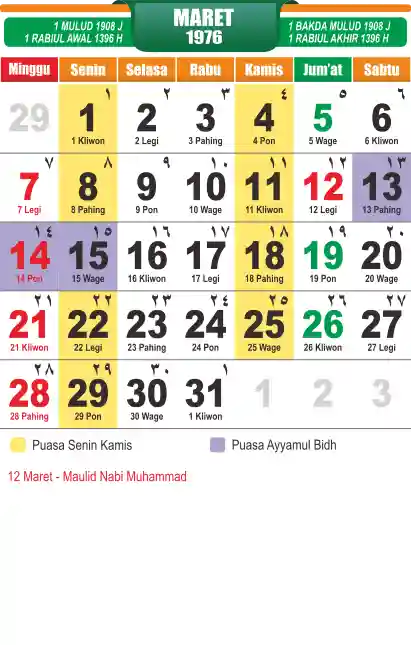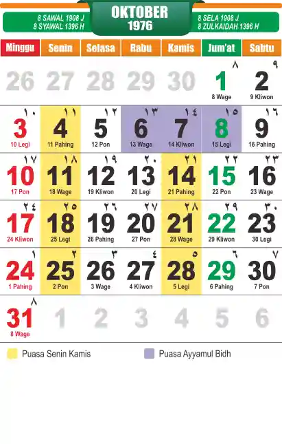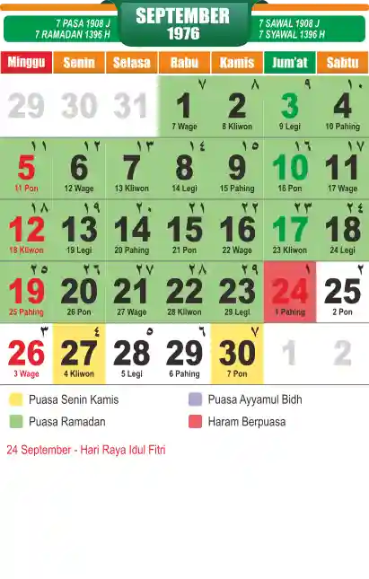 Template kalender puasa 1976, cocok sekali buat anda yang ingin cetak kalender yang bermanfat buat umat.