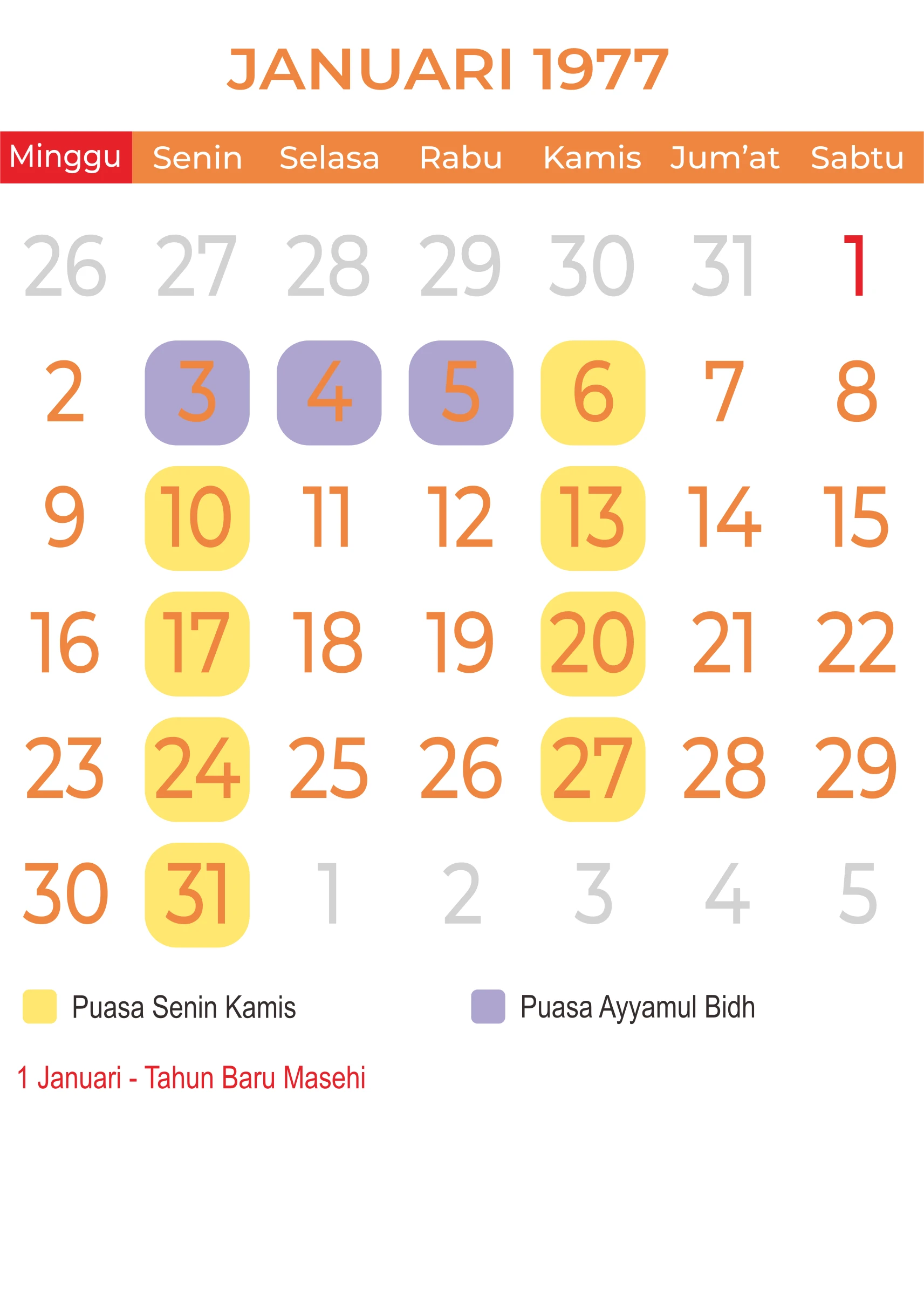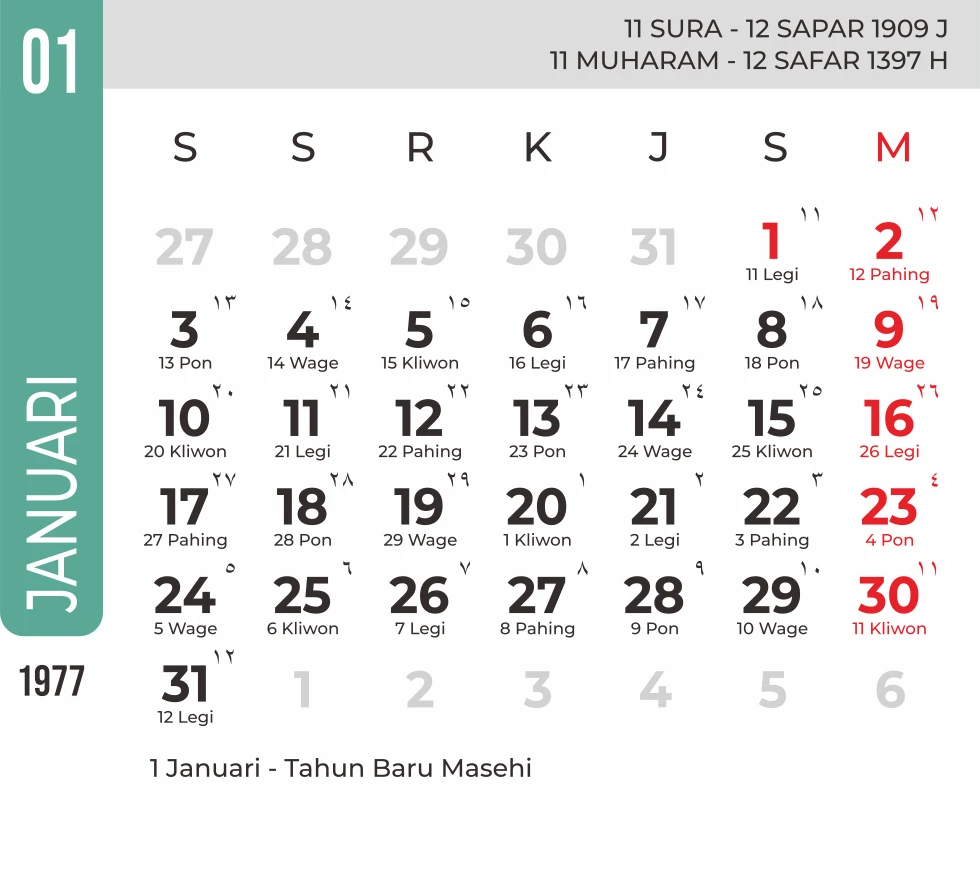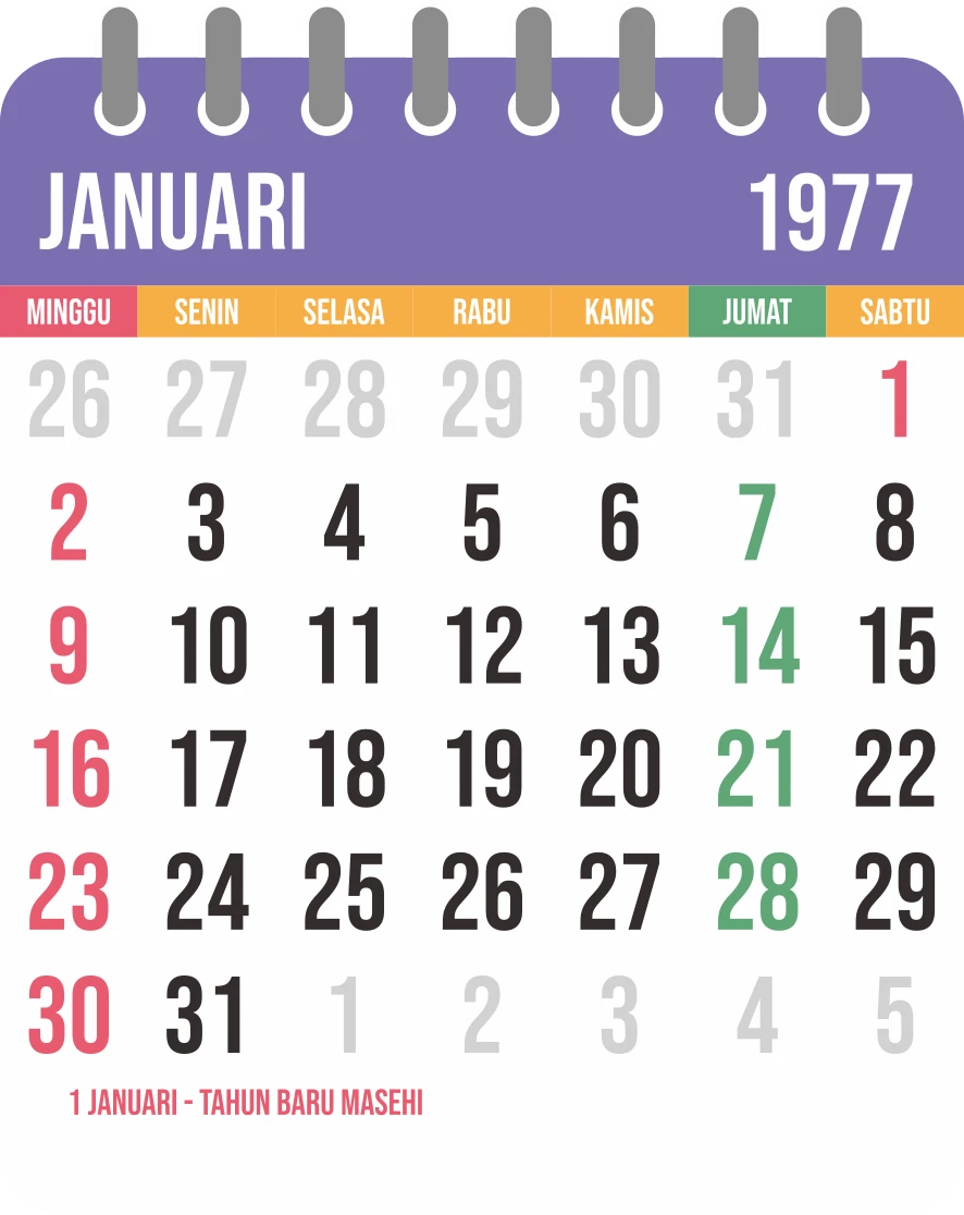 Dapatkan akses vector template kalender 1977 dengan berbagai tema, file editable, warna CMYK / RGB untuk CorelDRAW.