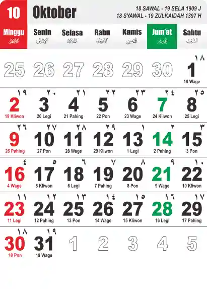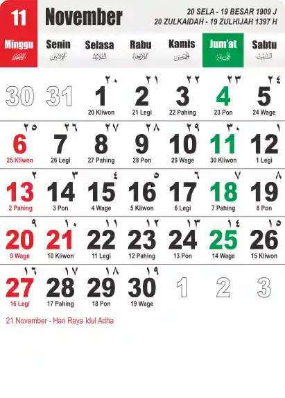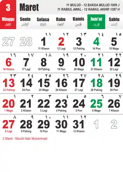 Template Kalender Jawa + Hijriah Vector