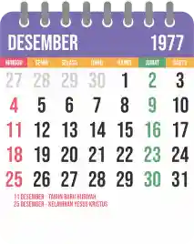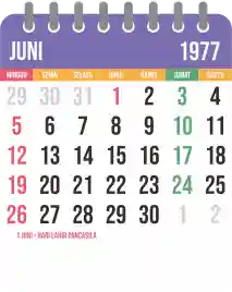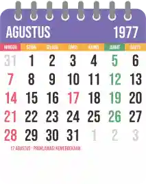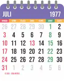 Template kalender 1977 yang bertemakan lucu dan moderen. Bentuknya simple tanpa tanggal hijriah dan tanggal jawa. Cocok buat kebutuhan kalender yang sifatnya universal.