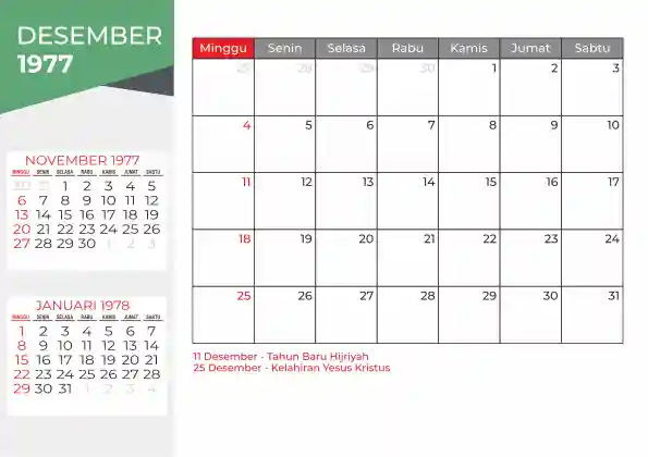 Template kalender 1977 duduk planner. Ada space kosong yang bisa di isi untuk menulis catatan. Fokus utama kalender ini adalah sebagia planner.