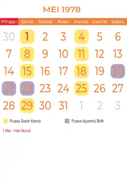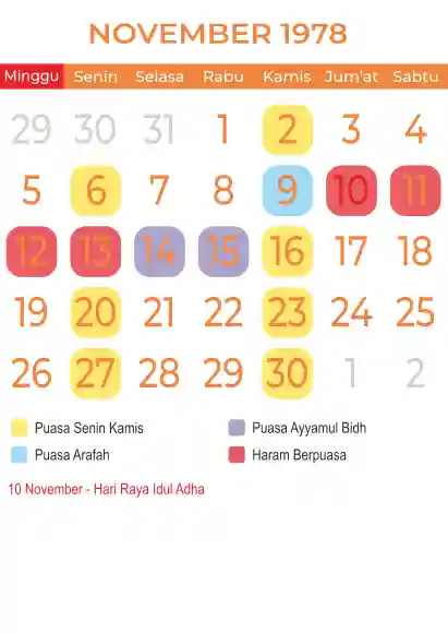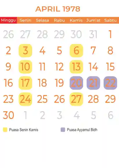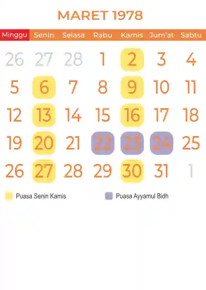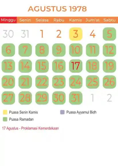 Template kalender puasa 1978, Versi yang lebih simple, cocok sekali buat anda yang ingin cetak kalender yang bermanfat buat umat.