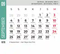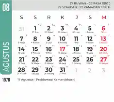 Template kalender 1978 dengan konsep minimalis modern dengan warna yang soft, cocok sekali buat kantor / bisnis seperti bank.