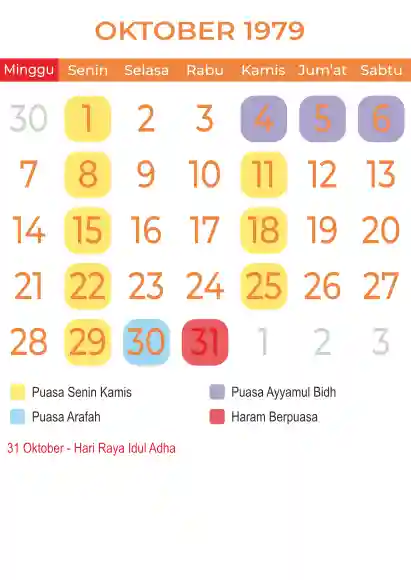 Template kalender puasa 1979, Versi yang lebih simple, cocok sekali buat anda yang ingin cetak kalender yang bermanfat buat umat.