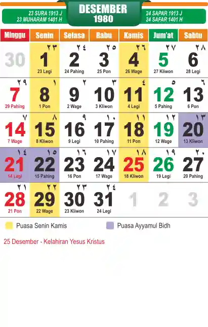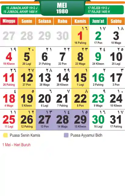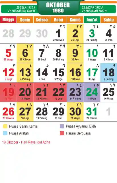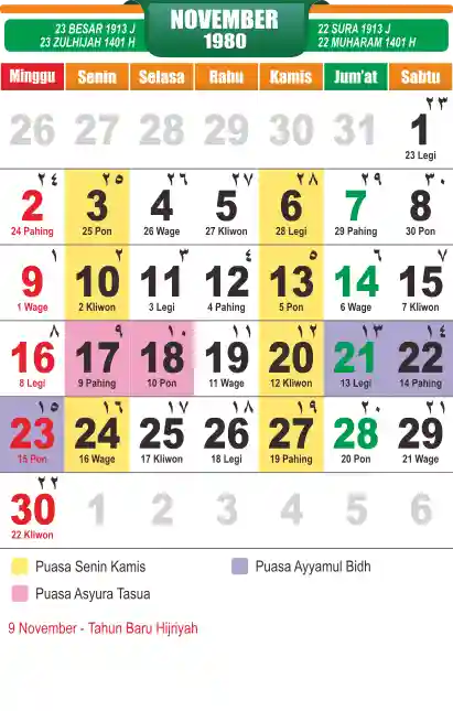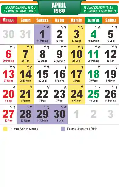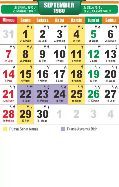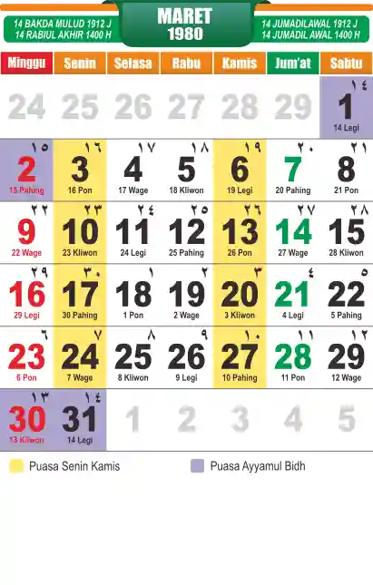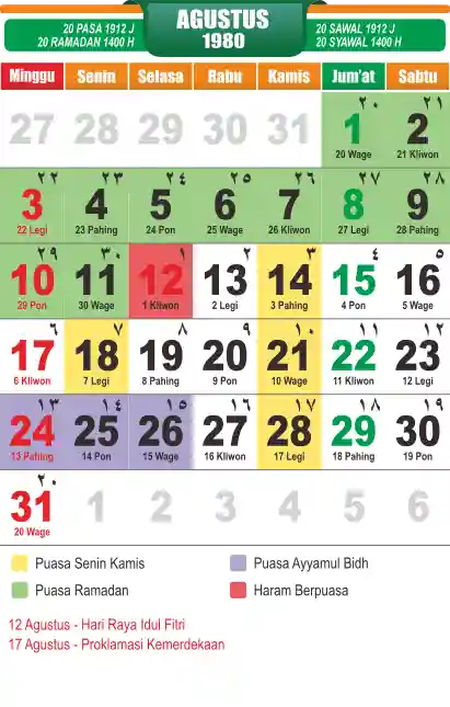 Template kalender puasa 1980, cocok sekali buat anda yang ingin cetak kalender yang bermanfat buat umat.