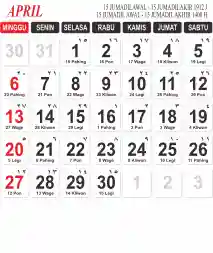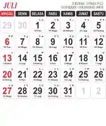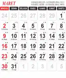 Template Kalender Jawa + Hijriah Vector
