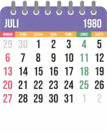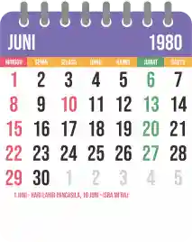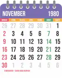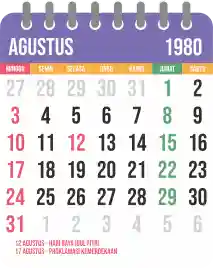 Template kalender 1980 yang bertemakan lucu dan moderen. Bentuknya simple tanpa tanggal hijriah dan tanggal jawa. Cocok buat kebutuhan kalender yang sifatnya universal.