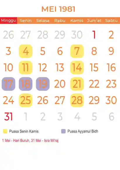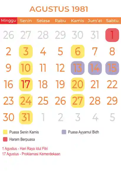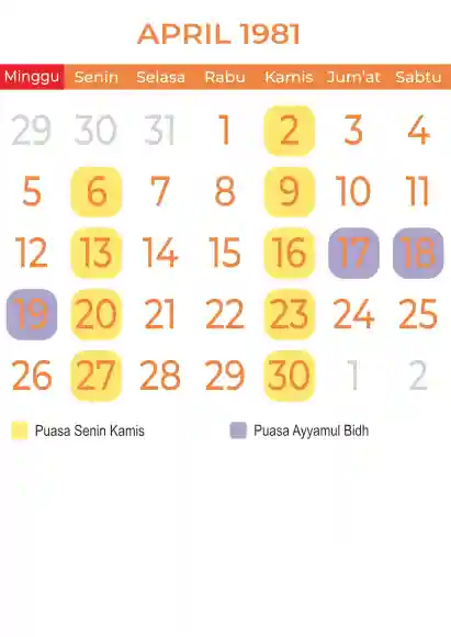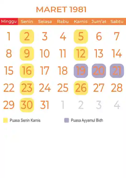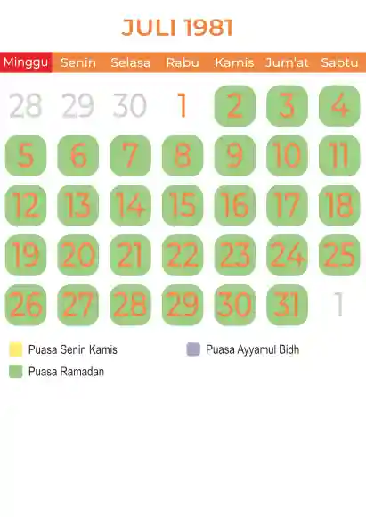 Template kalender puasa 1981, Versi yang lebih simple, cocok sekali buat anda yang ingin cetak kalender yang bermanfat buat umat.