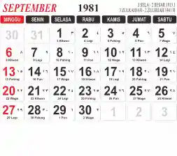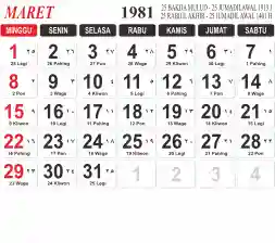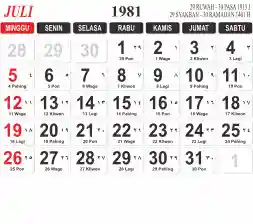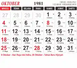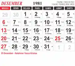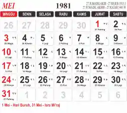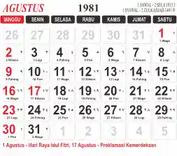 List hari libur tahun 1981 pada Tema 3 (Wide)