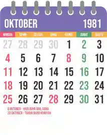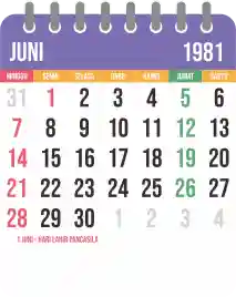 Template kalender 1981 yang bertemakan lucu dan moderen. Bentuknya simple tanpa tanggal hijriah dan tanggal jawa. Cocok buat kebutuhan kalender yang sifatnya universal.