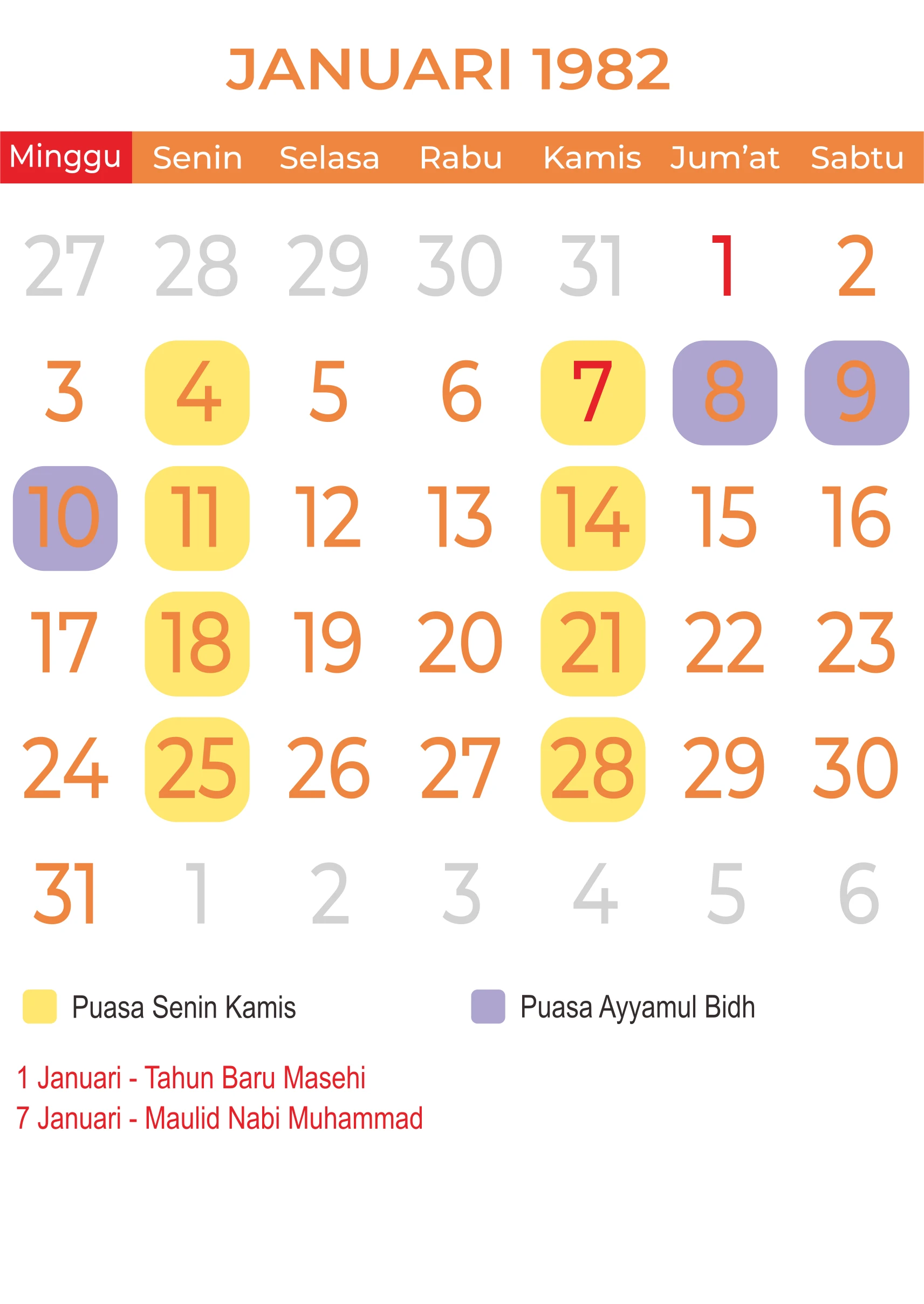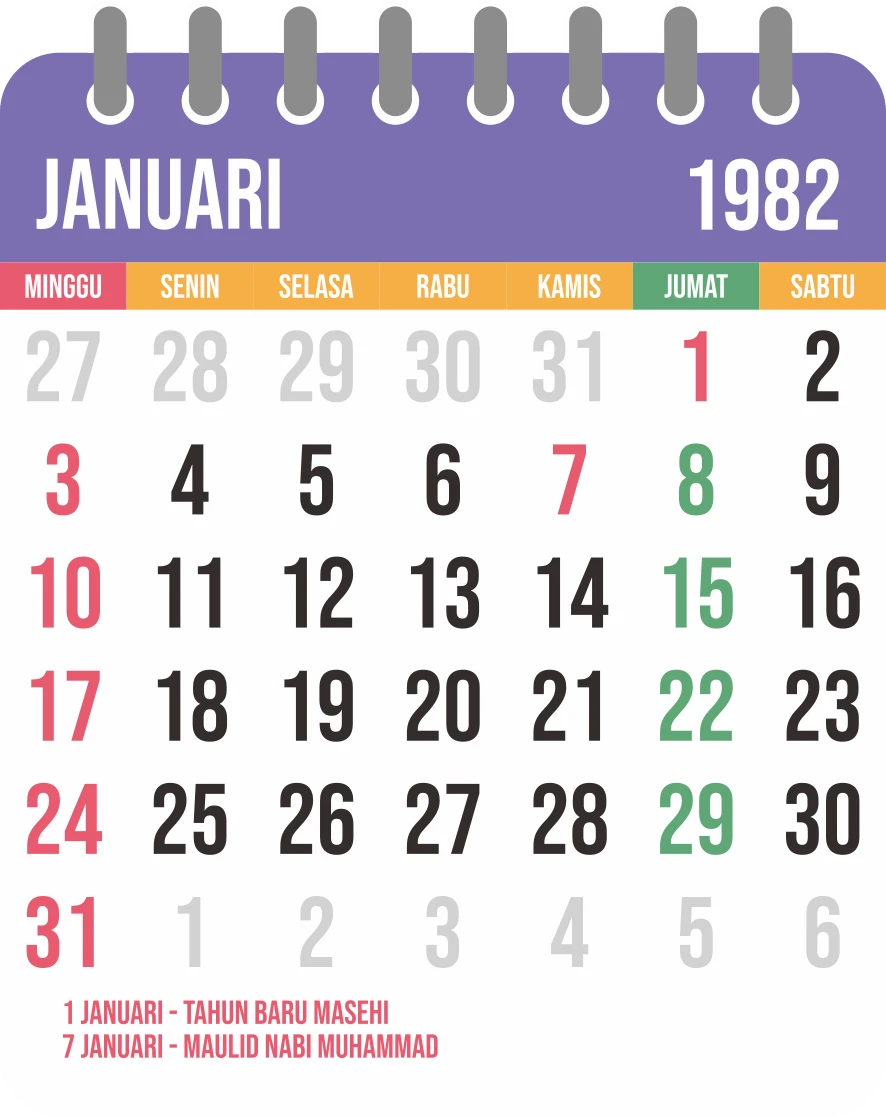 Dapatkan akses vector template kalender 1982 dengan berbagai tema, file editable, warna CMYK / RGB untuk CorelDRAW.