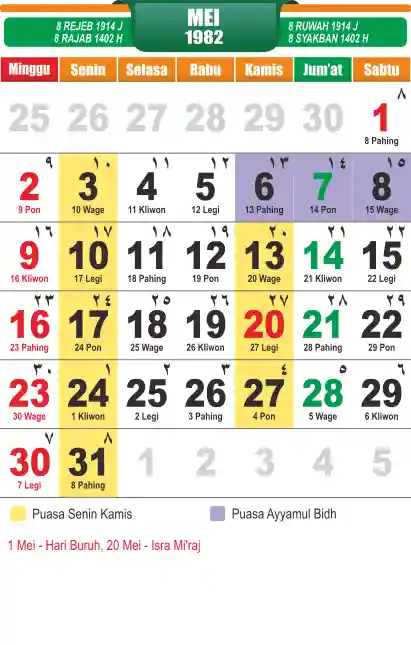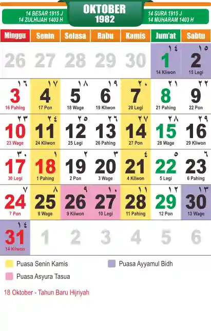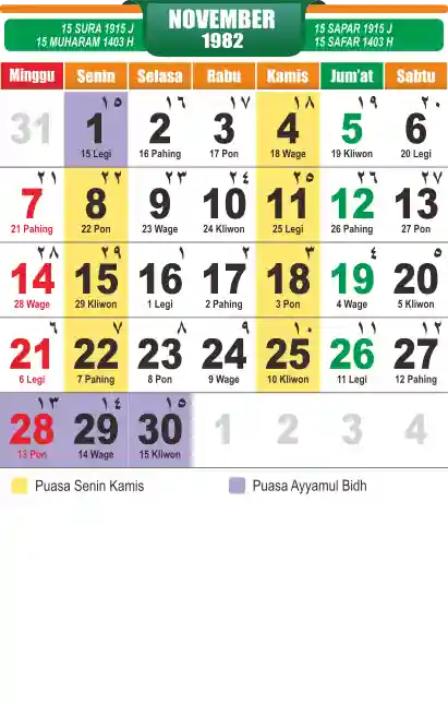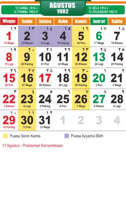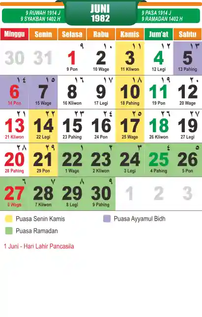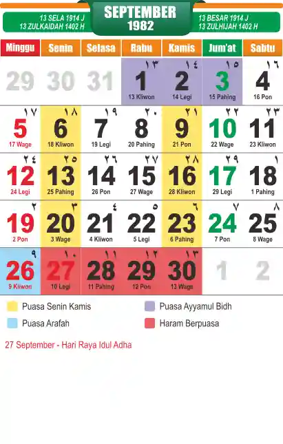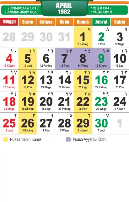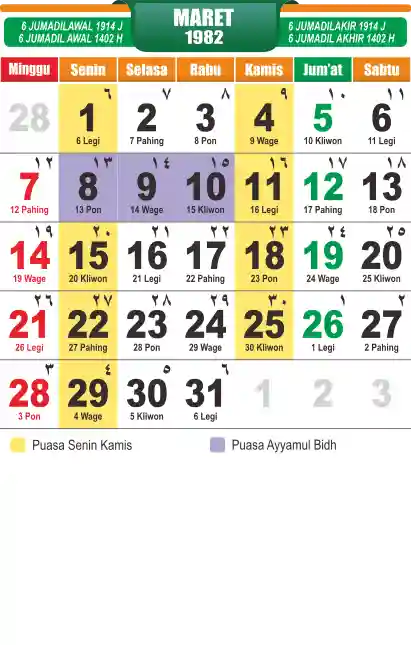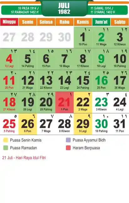 Template kalender puasa 1982, cocok sekali buat anda yang ingin cetak kalender yang bermanfat buat umat.