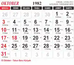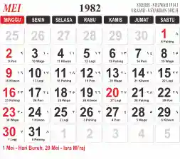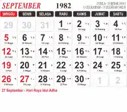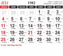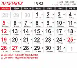 List hari libur tahun 1982 pada Tema 3 (Wide)