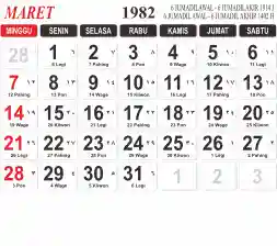 Tema kalender 1982 yang cocok buat desain kalender yang lebih lebar, cocok buat kalender kantor atau desain yang lebih minimalis.