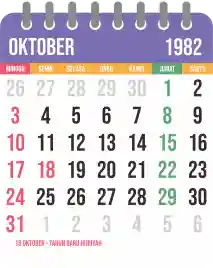 Template kalender 1982 yang bertemakan lucu dan moderen. Bentuknya simple tanpa tanggal hijriah dan tanggal jawa. Cocok buat kebutuhan kalender yang sifatnya universal.