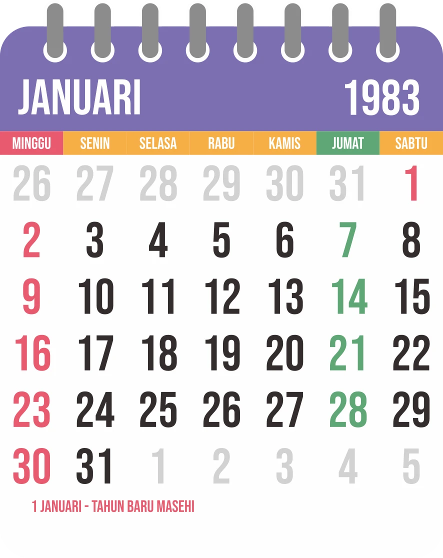 Dapatkan akses vector template kalender 1983 dengan berbagai tema, file editable, warna CMYK / RGB untuk CorelDRAW.