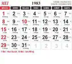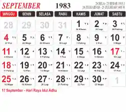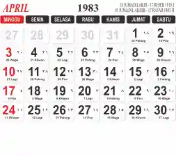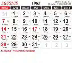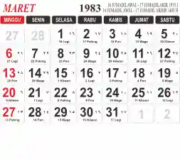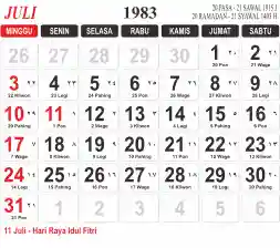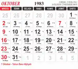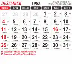 List hari libur tahun 1983 pada Tema 3 (Wide)