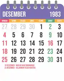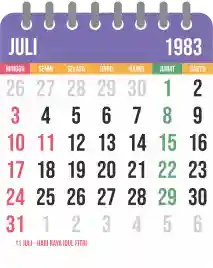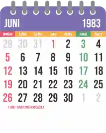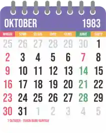 Template kalender 1983 yang bertemakan lucu dan moderen. Bentuknya simple tanpa tanggal hijriah dan tanggal jawa. Cocok buat kebutuhan kalender yang sifatnya universal.