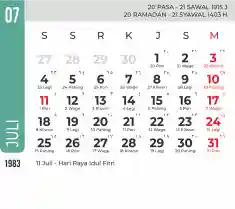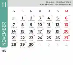 Template kalender 1983 dengan konsep minimalis modern dengan warna yang soft, cocok sekali buat kantor / bisnis seperti bank.